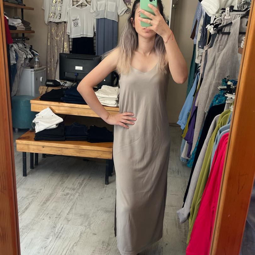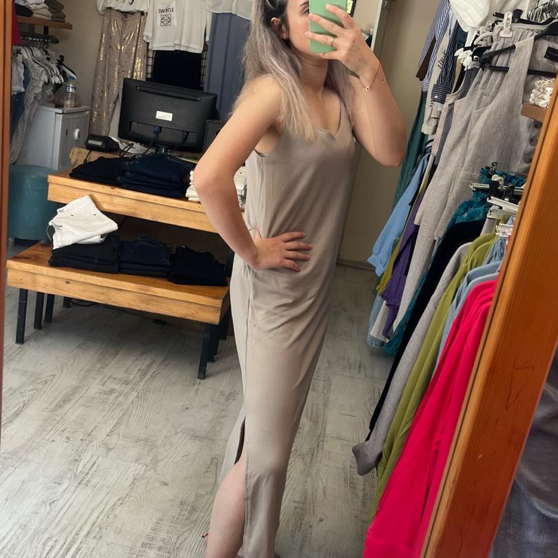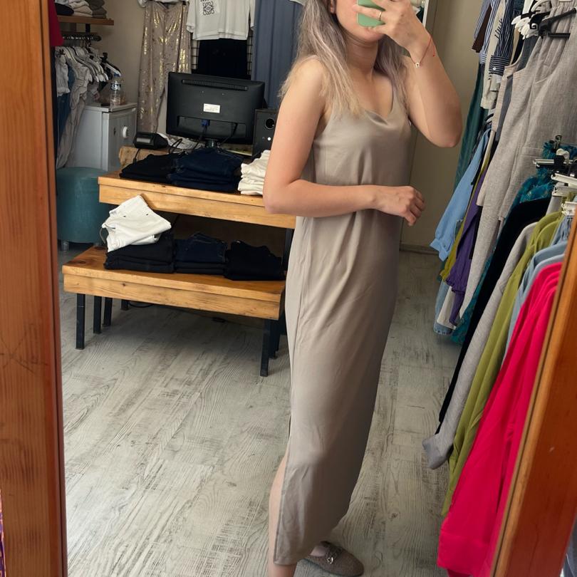 ASKILI ELBİSE KREM