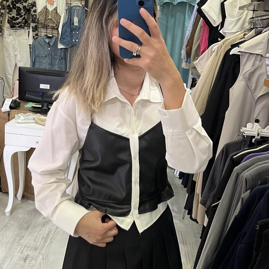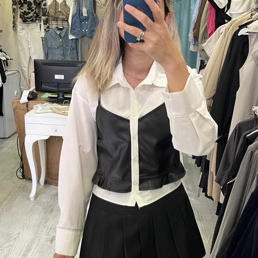 Deri detaylı gömlek