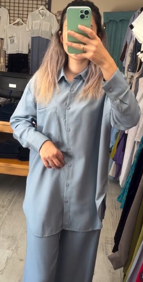 ÜST GÖMLEK ALT PANTOLON BELİ LASTİKLİ BOL PAÇA