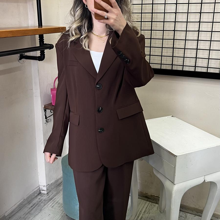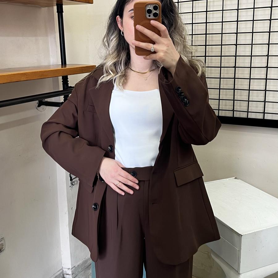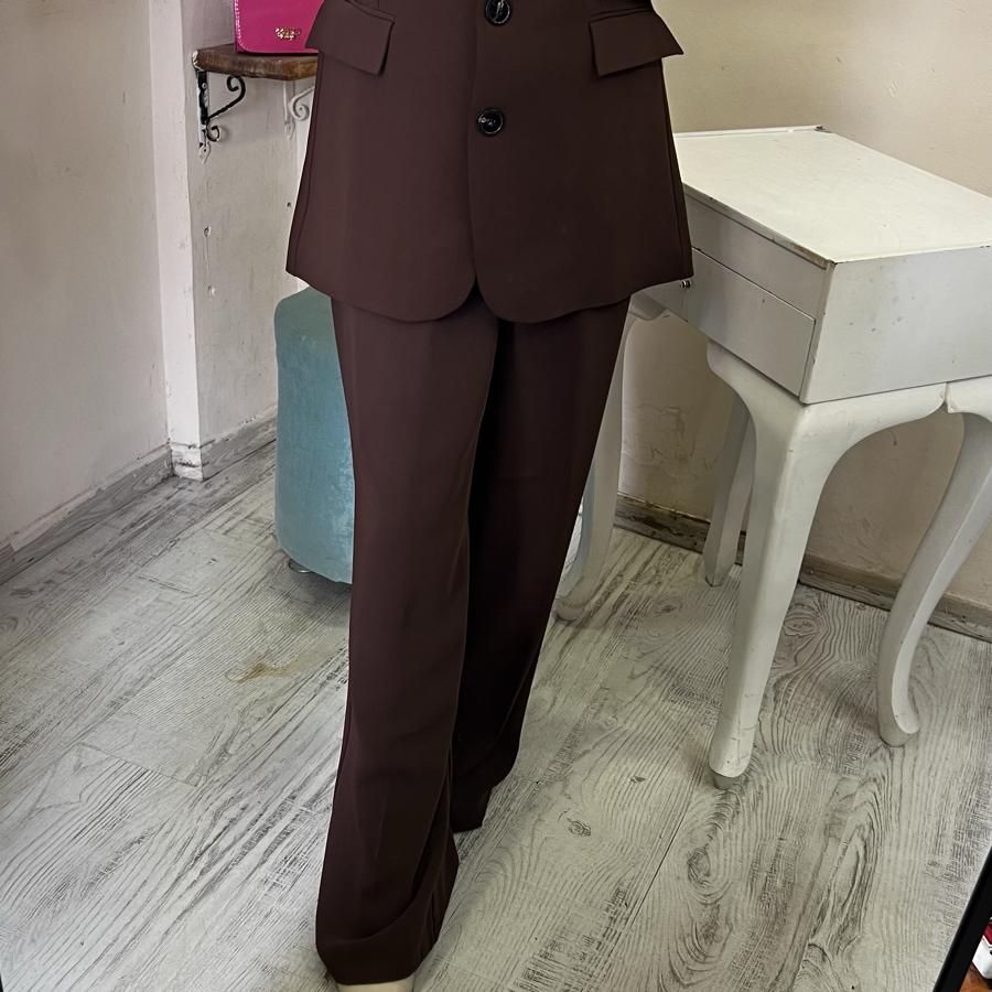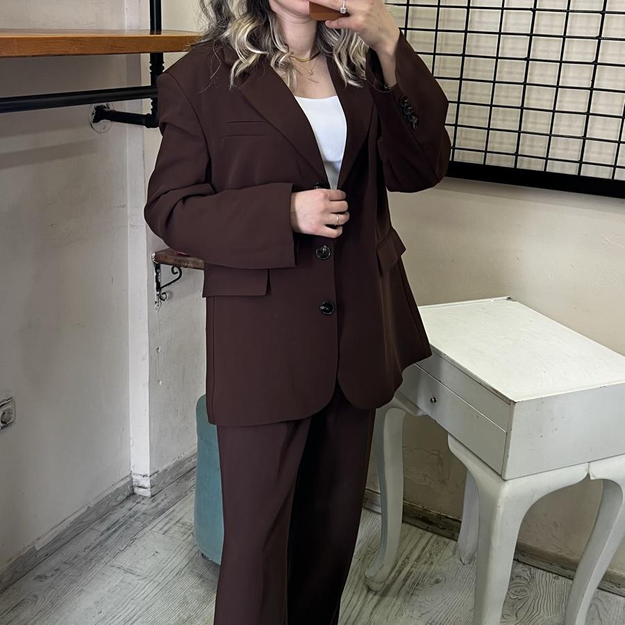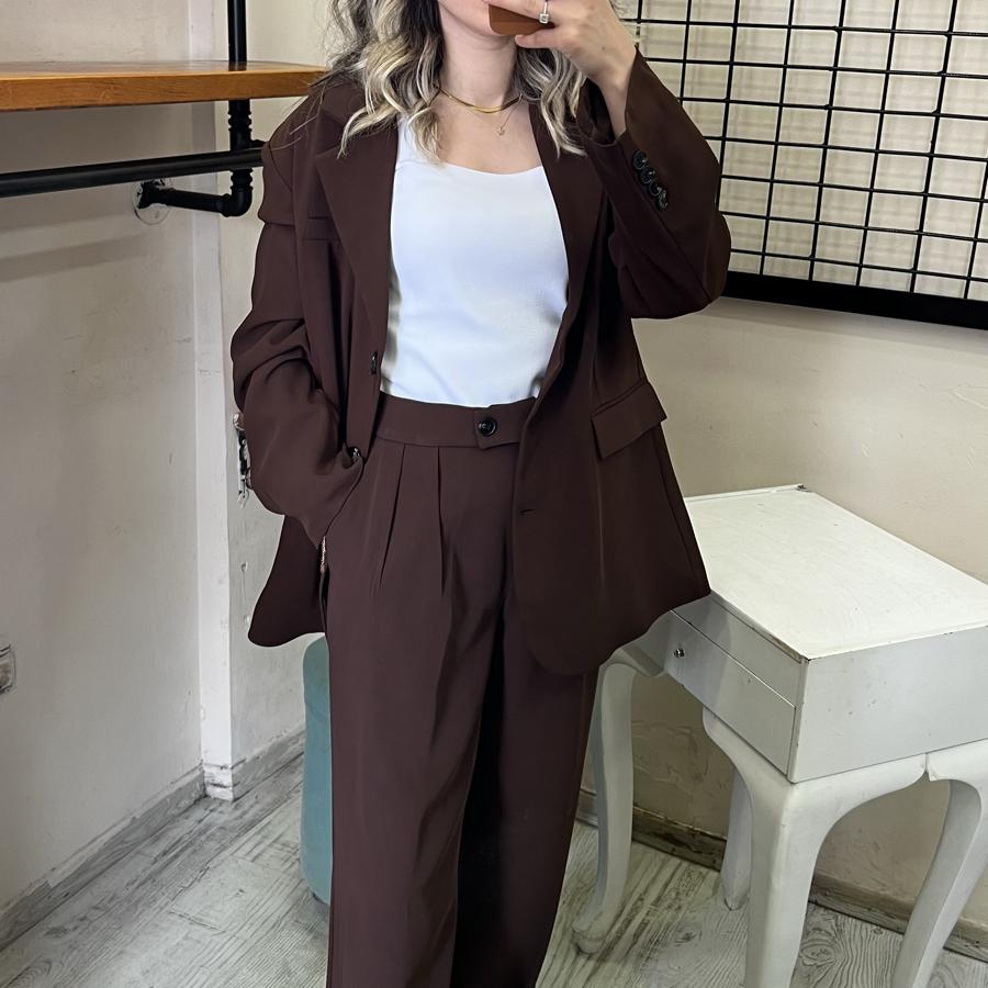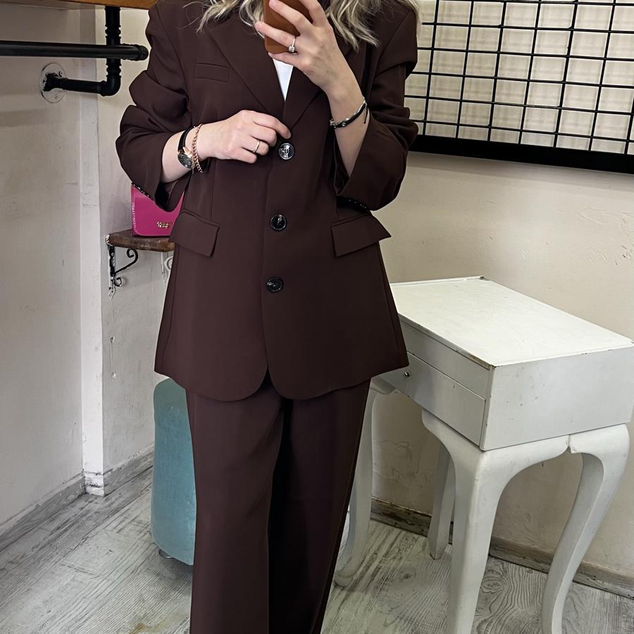 İKİLİ TAKIM CEKET PALAZZO PANTOLON KAHVE RENK S/M/L BEDEN
