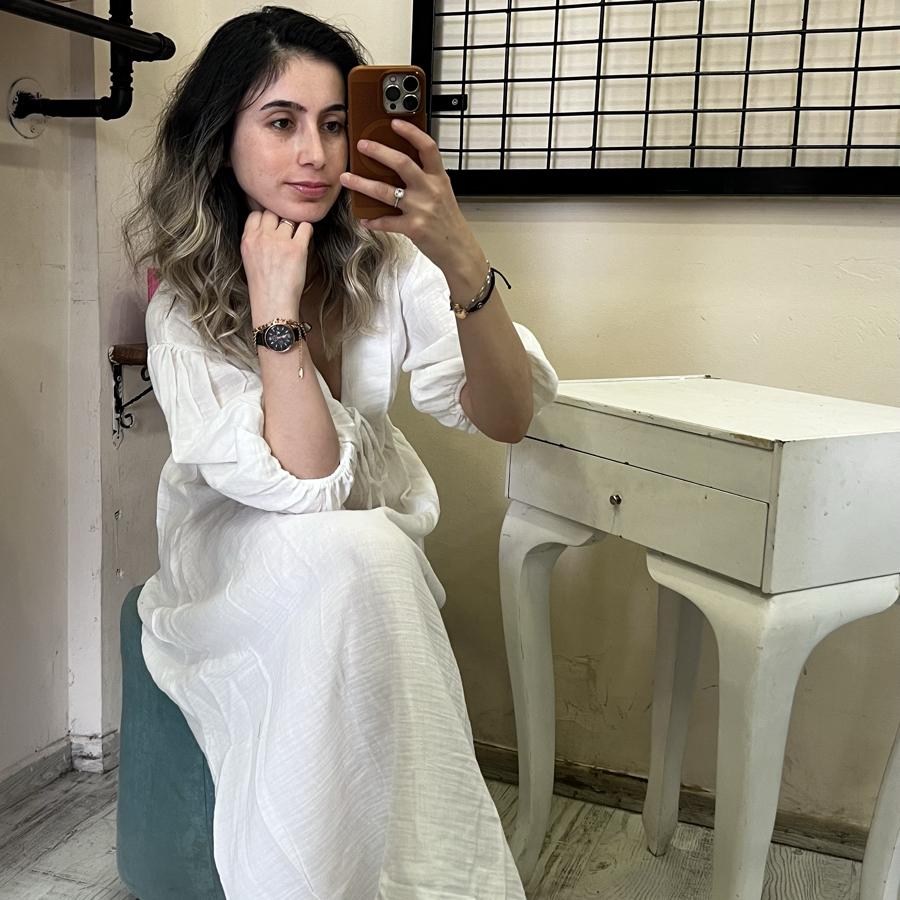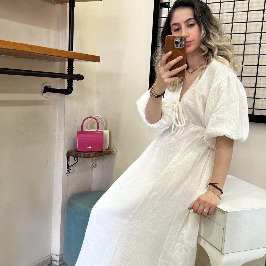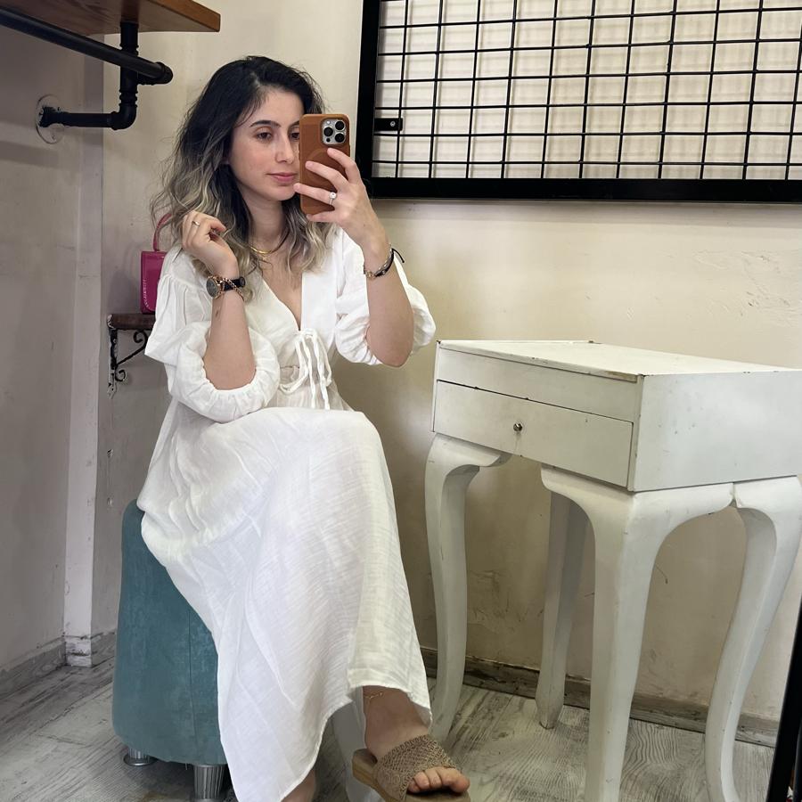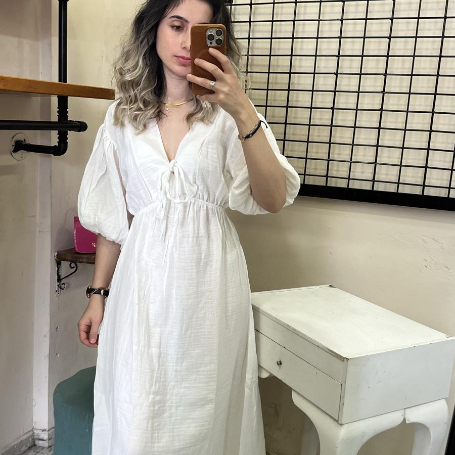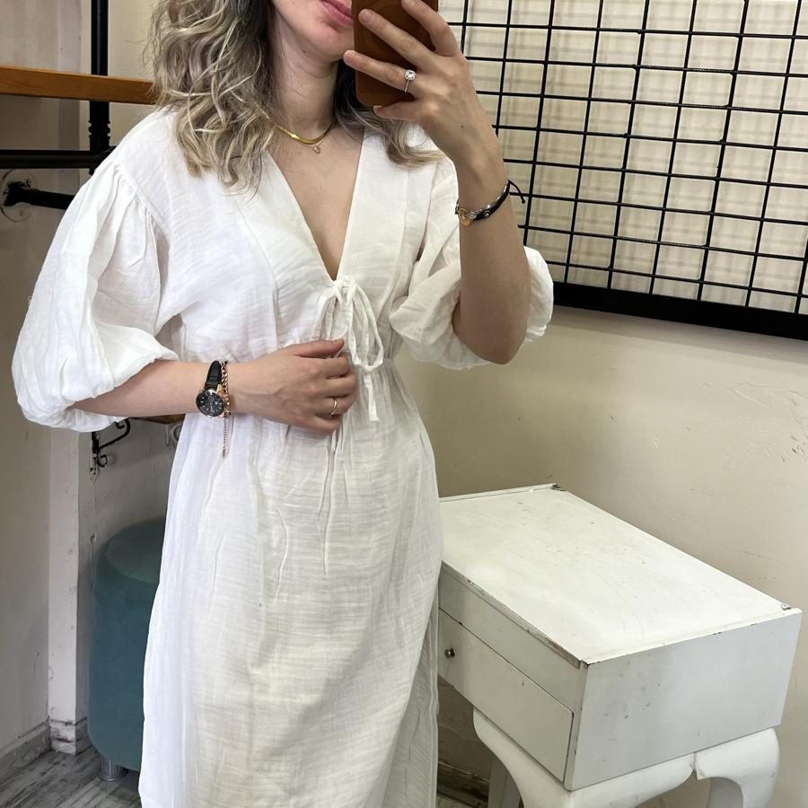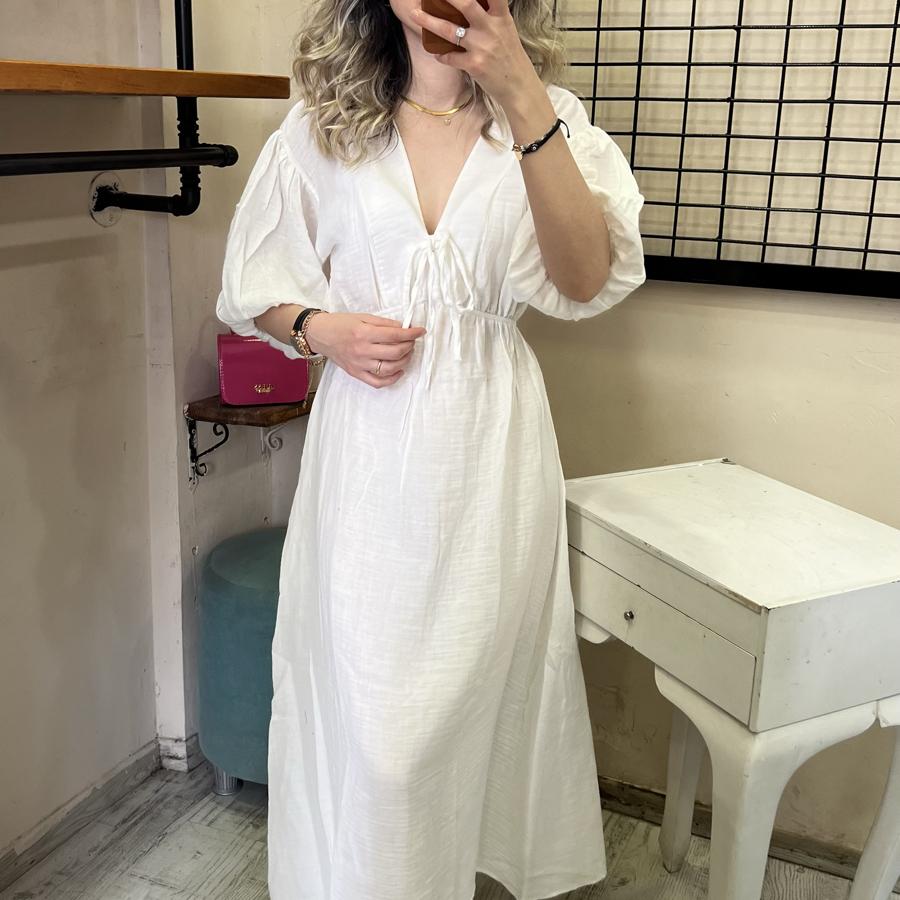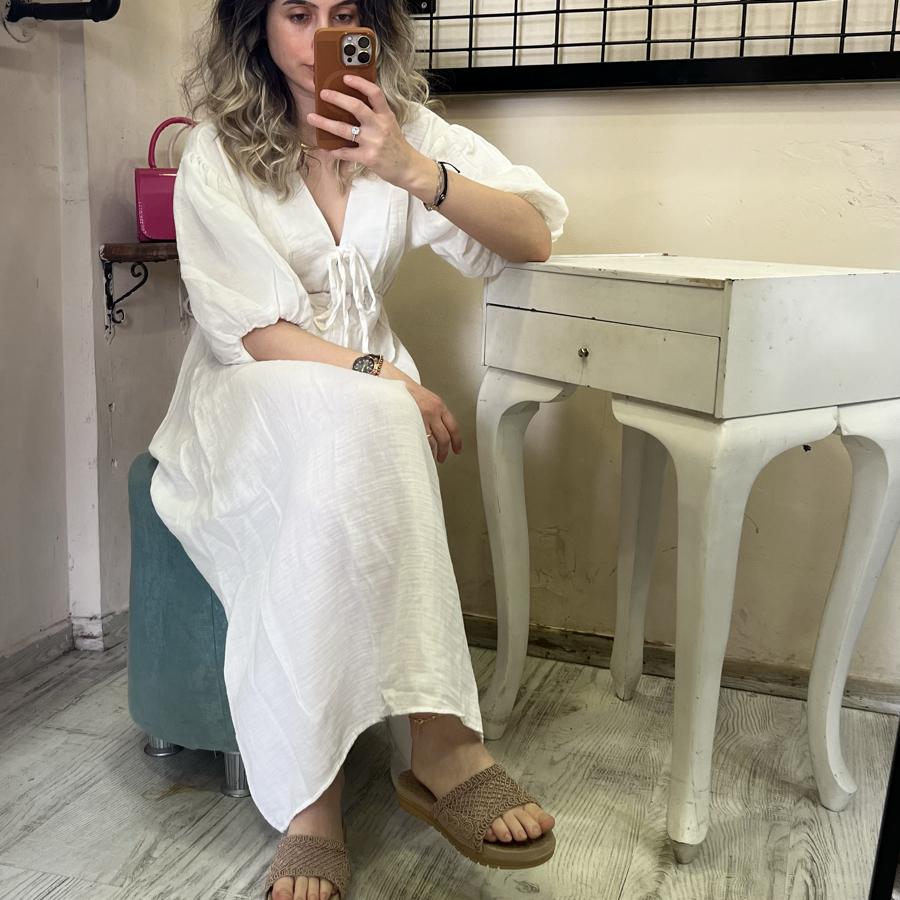 MÜSLİN KUMAŞ BEYAZ ELBİSE S/M/L BEDEN
