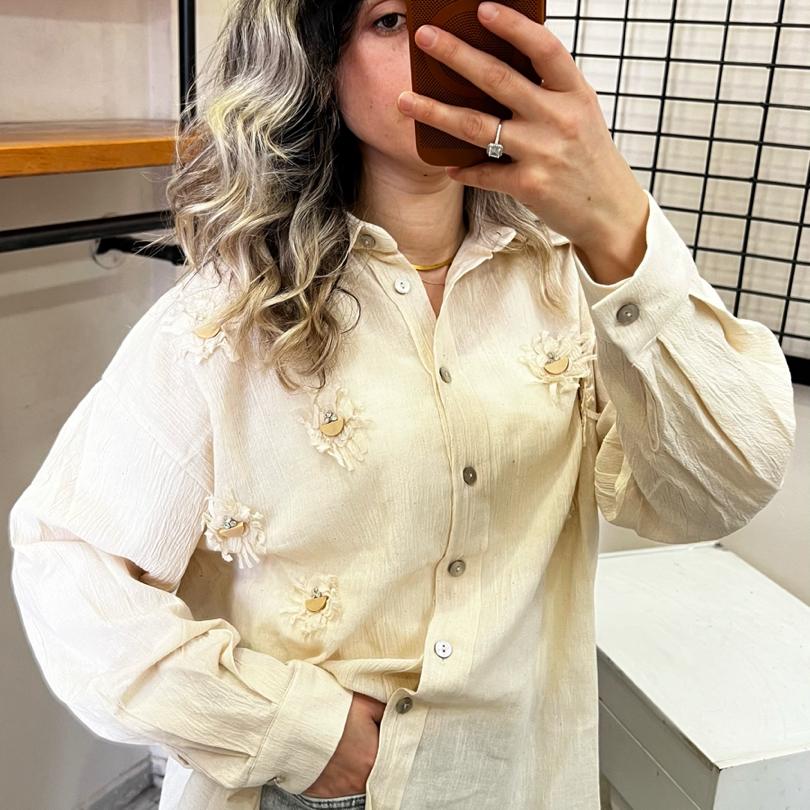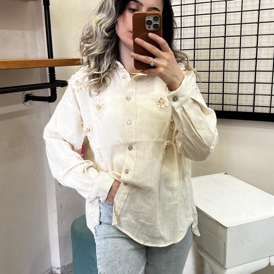 PERRY ÇİÇEK İŞLEMELİ GÖMLEK TAŞ RENK STANDART BEDEN