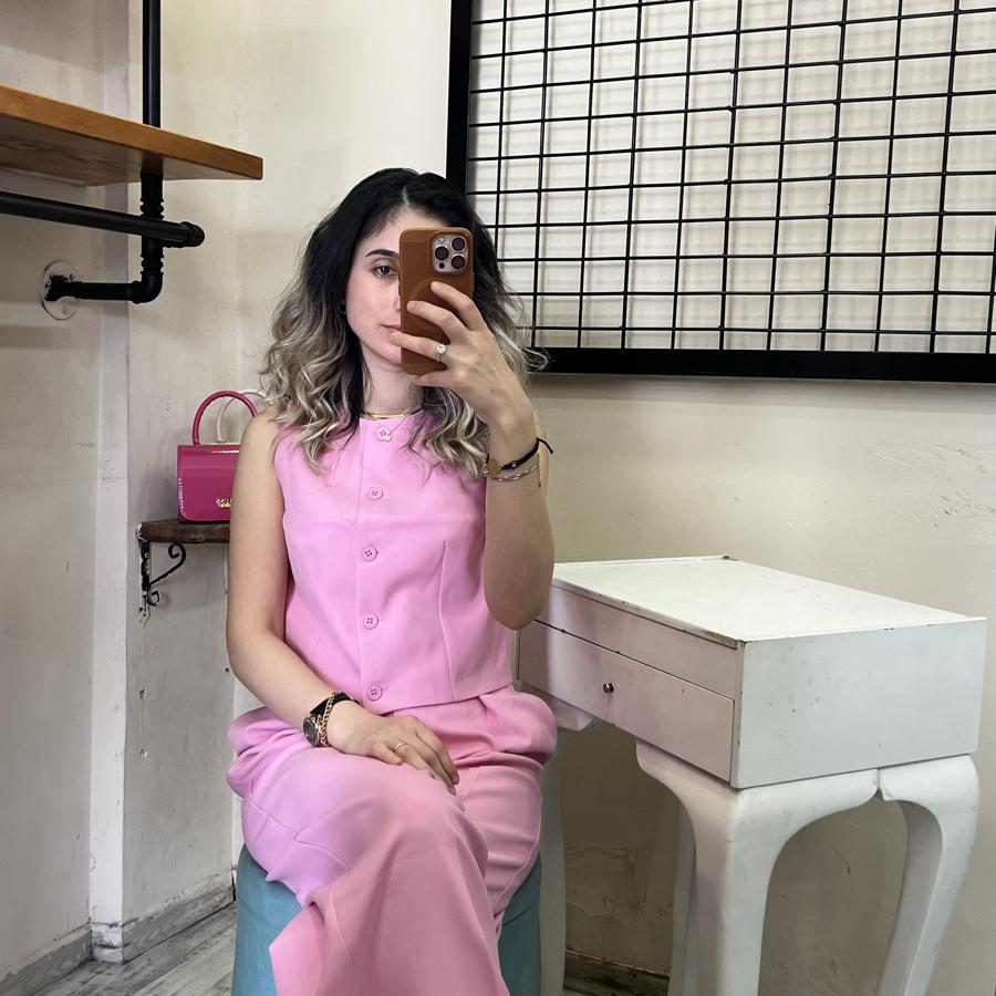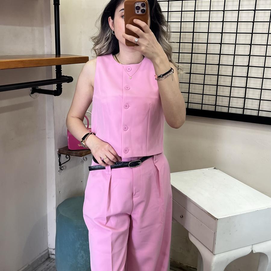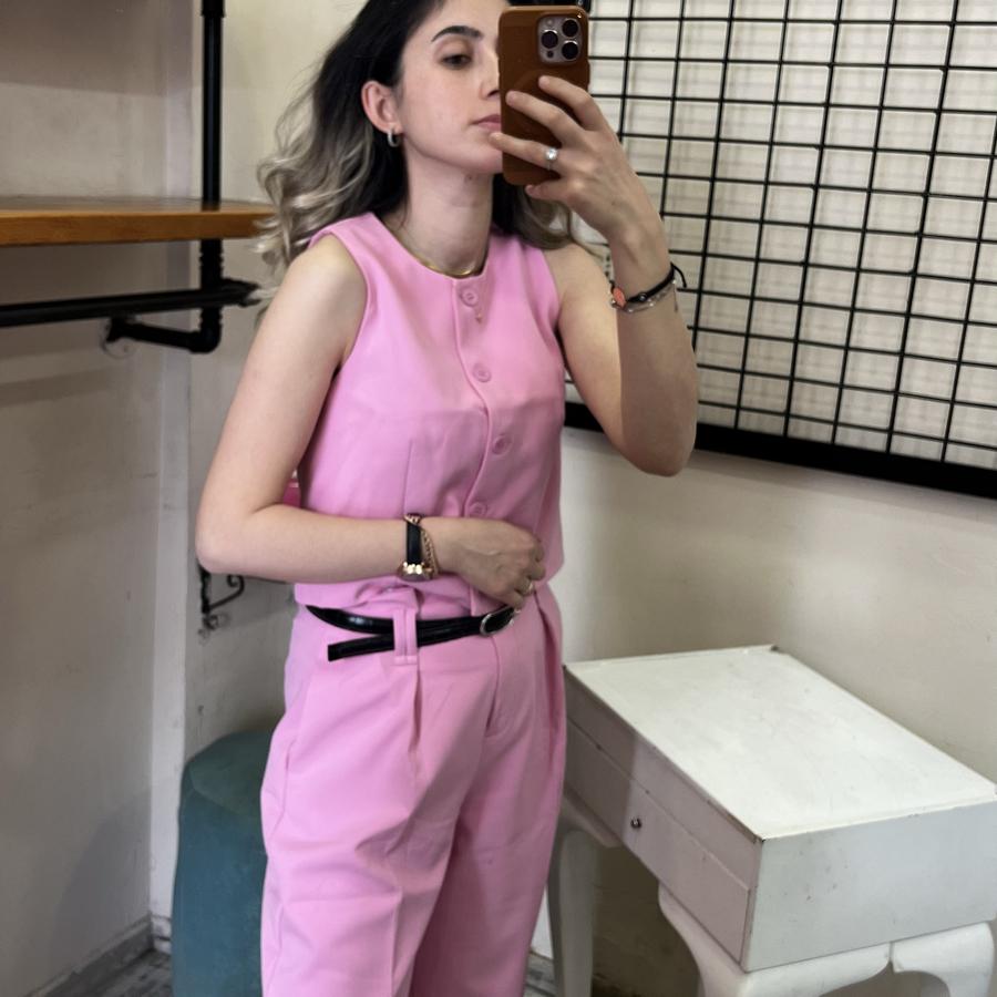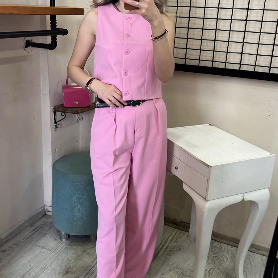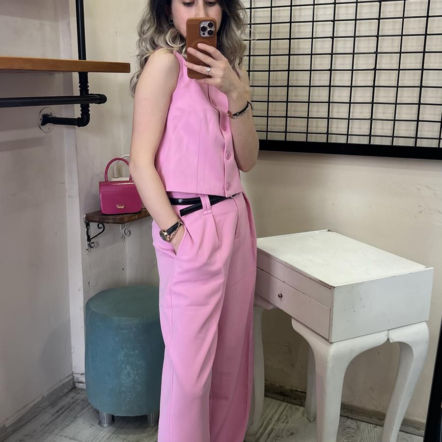 QUZU BELİ KEMERLİ PALAZZO PANTOLON PEMBE RENK S/M/L BEDEN