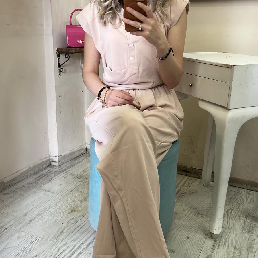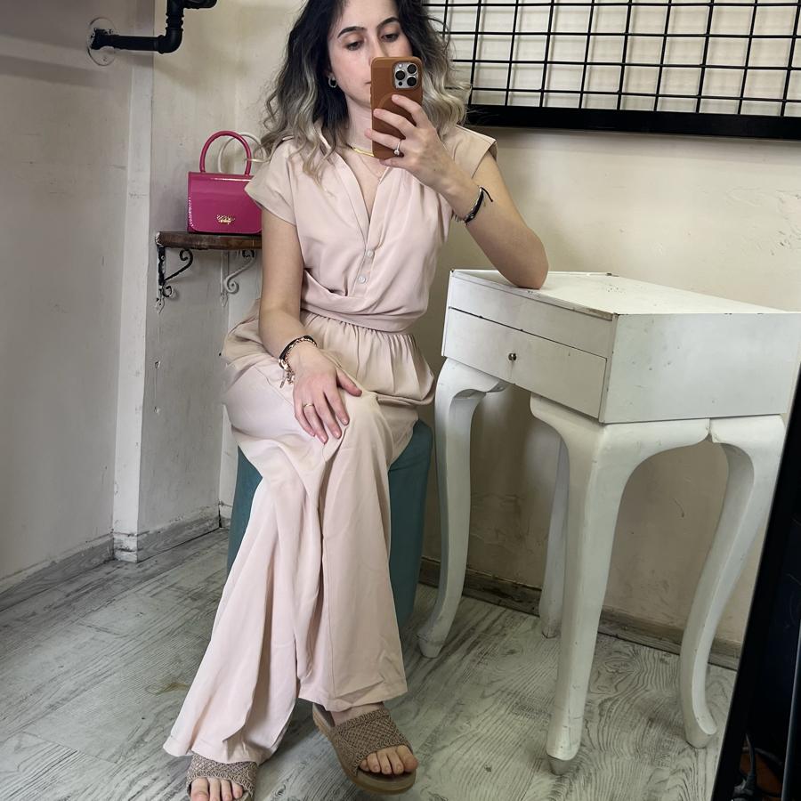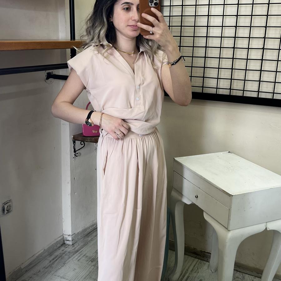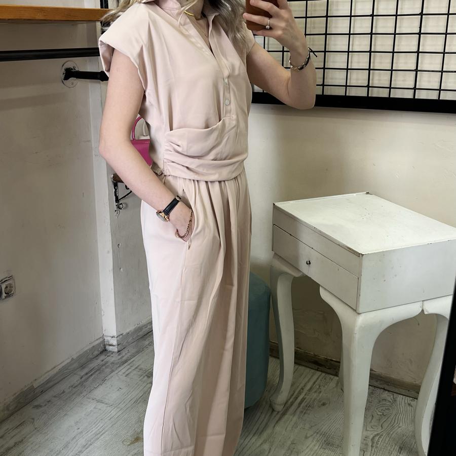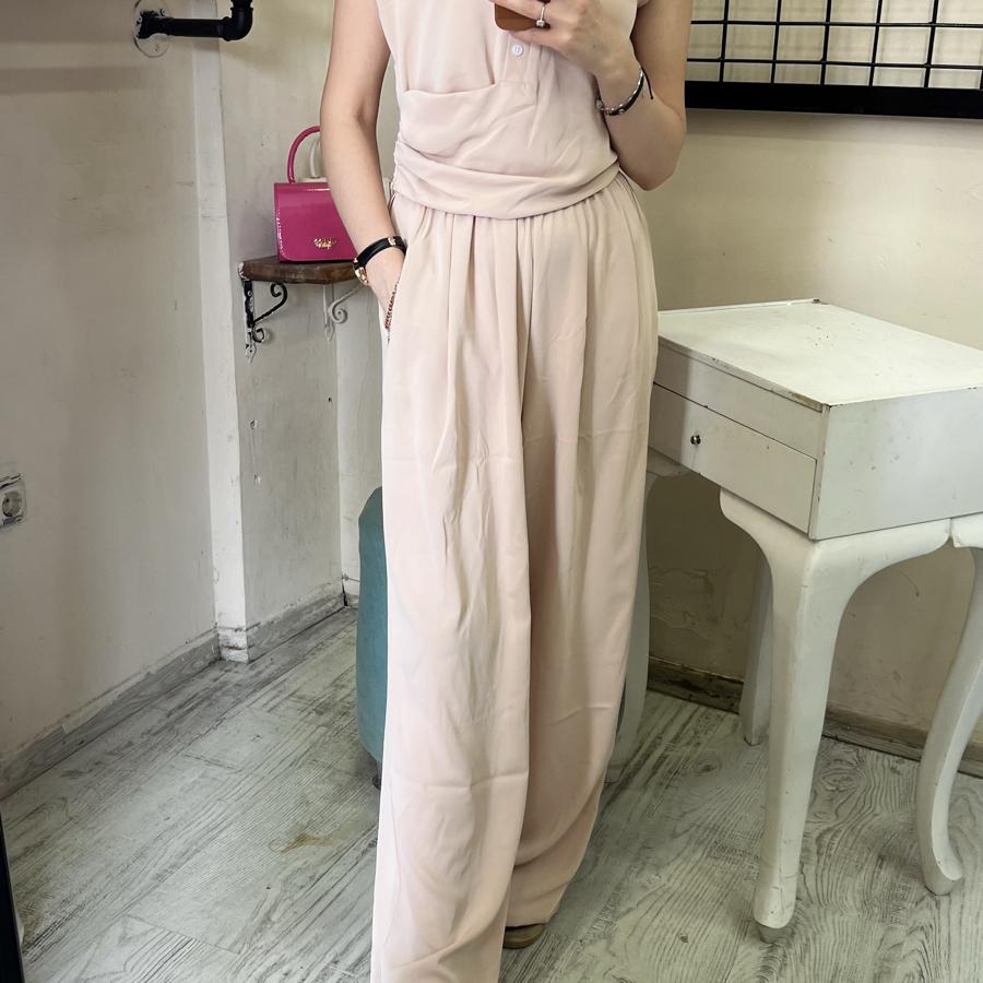 QUZU BELİ LASTİKLİ YAN CEPLİ BEJ RENK PANTOLON S/M/L BEDEN