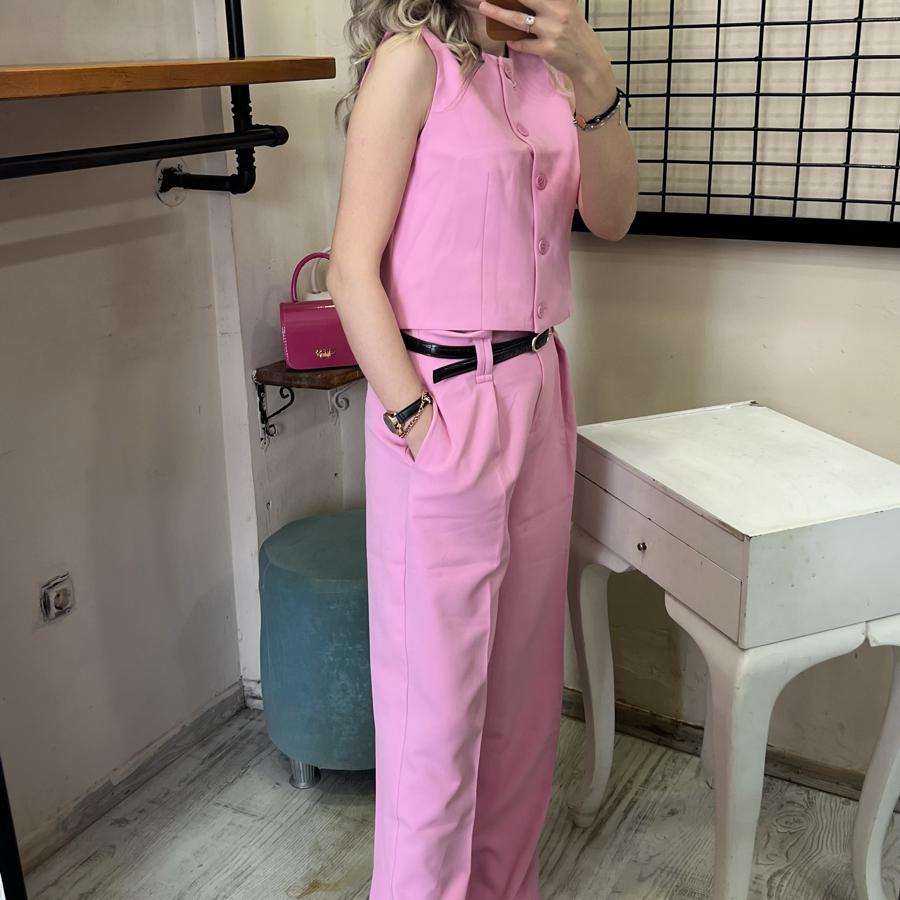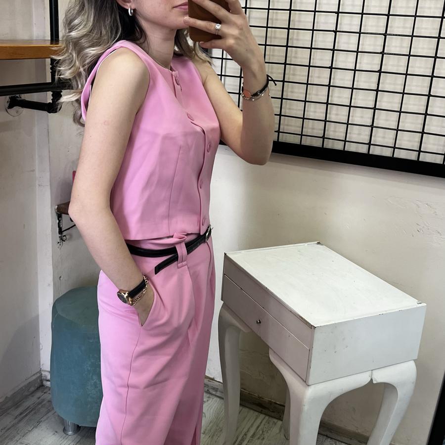 QUZU KISA YELEK DÜĞMELİ PEMBE RENK S/M/L BEDEN