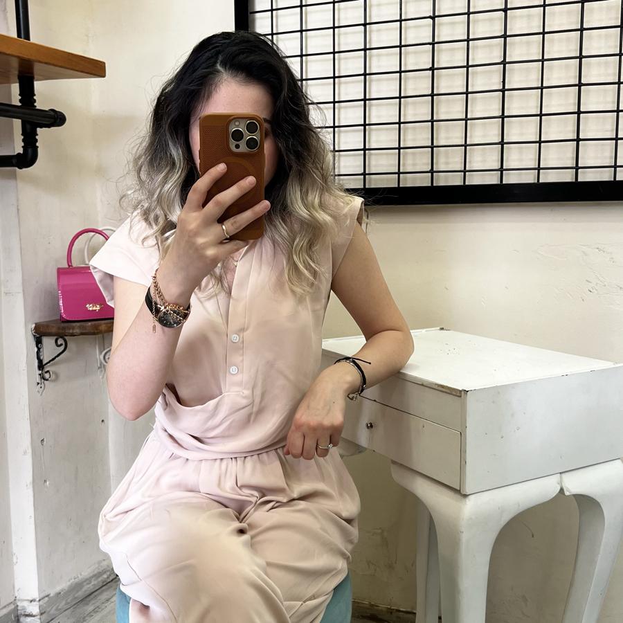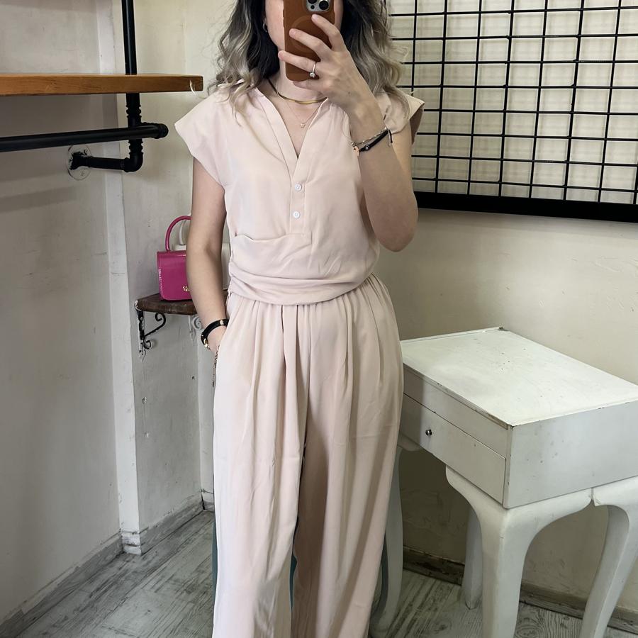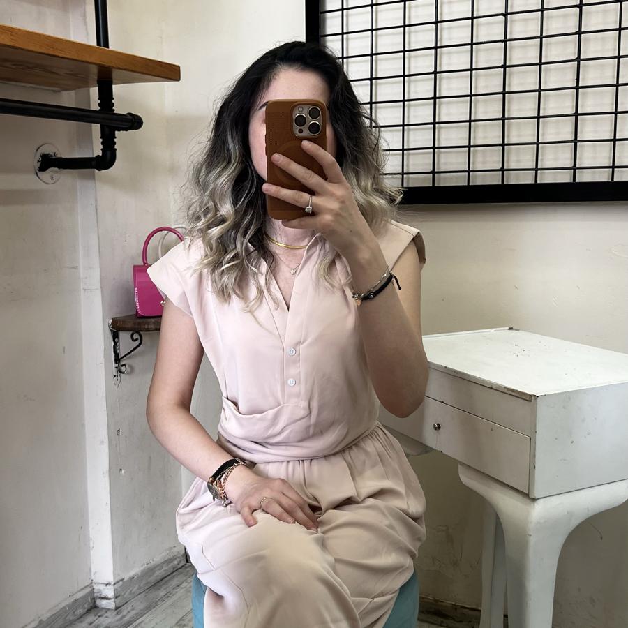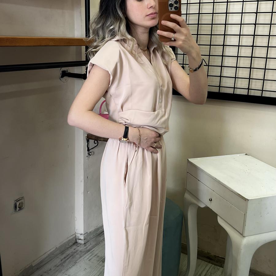 QUZU ÖNDEN DÜĞMELİ YANDAN FERMUARLI BLUZ BEJ RENK S/M/L BEDEN