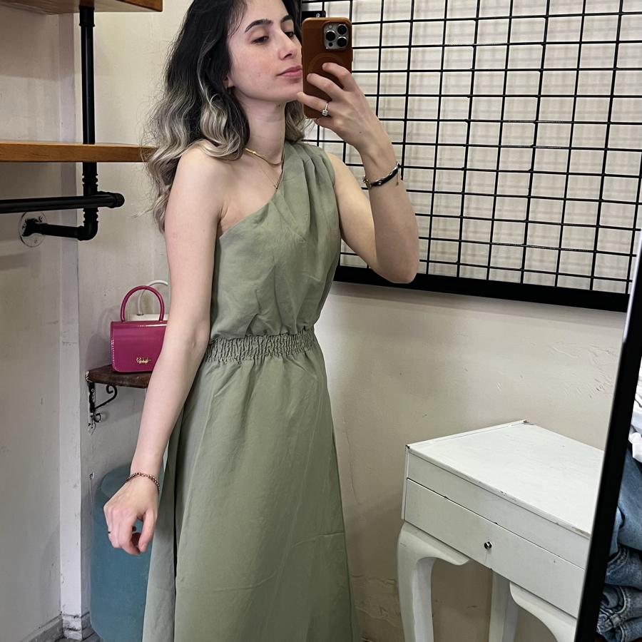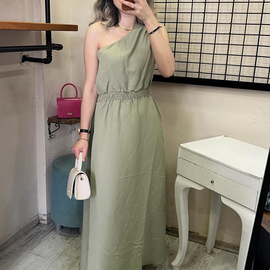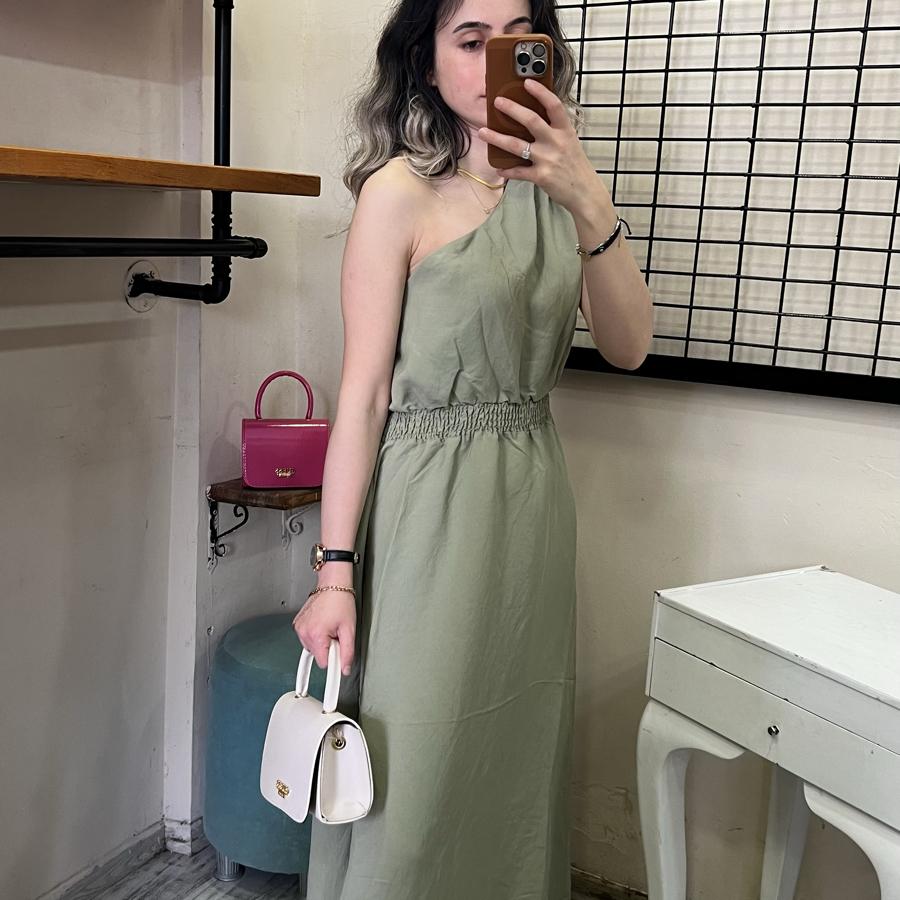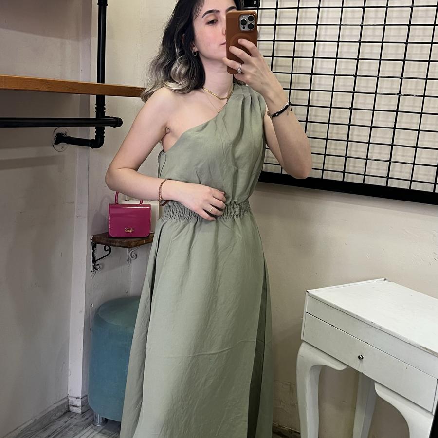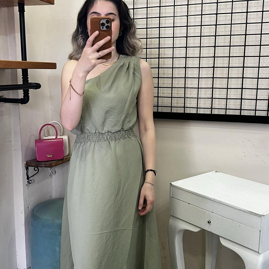 QUZU TEK OMUZ ELBİSE HAKİ RENK S/M/L BEDEN