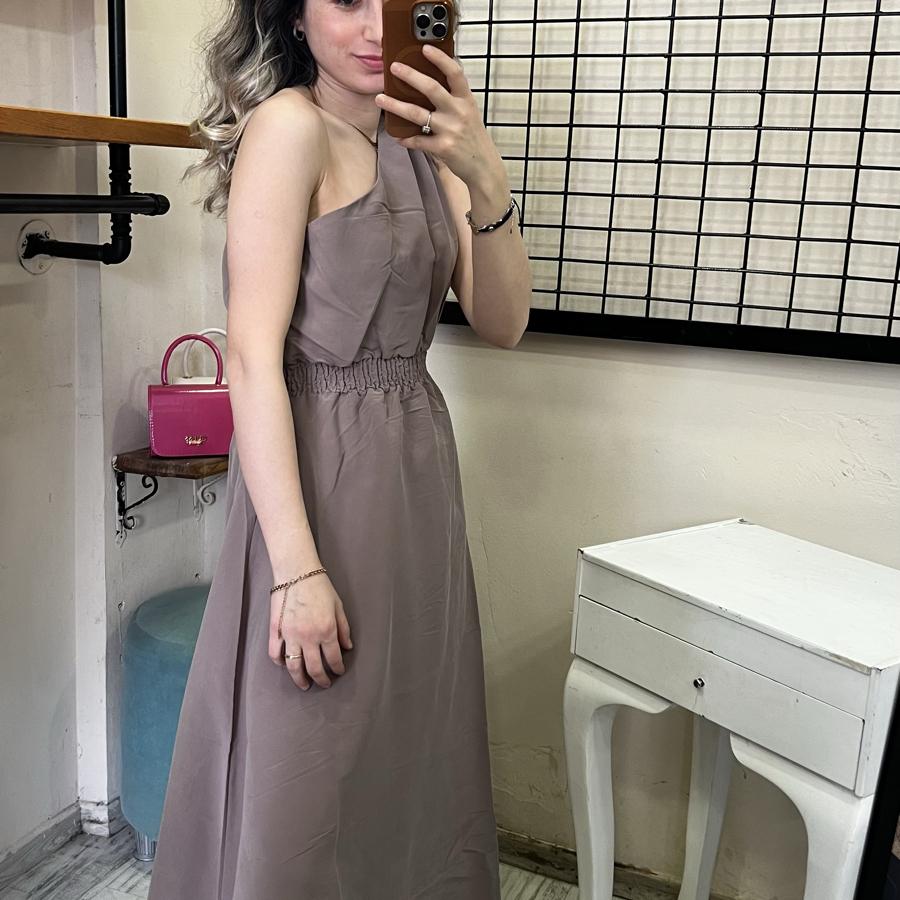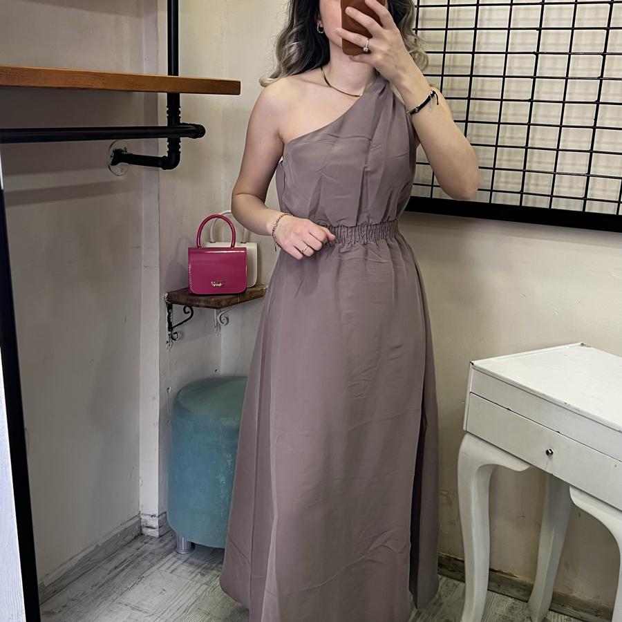 QUZU TEK OMUZ ELBİSE KAHVE RENK S/M/L BEDEN
